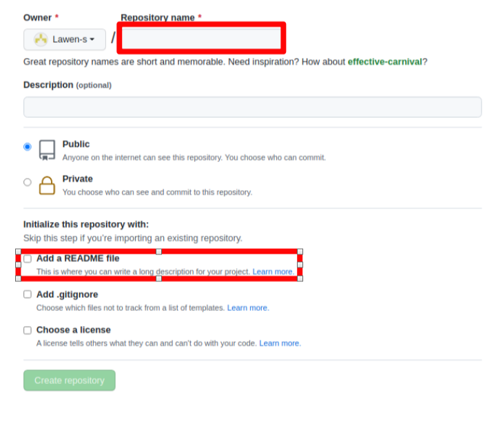 1. 내 Github에 내 이름과 같은 이름으로 폴더를 만들고 ReadMe.md를 체크한다.