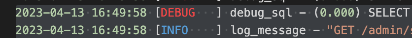 import os import logging LOGGING = { 'version': 1, 'disable_existing_loggers': False, 'filters': { 'require_debug_false': { '()': 'django.utils.log.RequireDebugFalse', }, 'require_debug_true': { '()': 'django.utils.log.RequireDebugTrue', }, }, 'formatters': { 'test': { 'format': u'%(asctime)s [%(levelname)-8s] %(funcName)s - %(message)s [%(pathname)s:%(lineno)d] ', 'datefmt': '%Y-%m-%d %H:%M:%S' }, }, 'handlers': { 'file': { 'level': 'DEBUG', 'filters': ['require_debug_true'], 'class': 'logging.handlers.RotatingFileHandler', 'filename': os.path.join(BASE_DIR , 'logs/test.log'), 'maxBytes': 1024*1024*5, # 5 MB 'backupCount': 5, 'formatter': 'test', }, }, 'loggers': { 'django': { 'level': 'INFO', 'handlers': ['file'], 'propagate': False, }, 'django.db.backends': { 'level': 'DEBUG', 'handlers': ['file'], 'propagate': False, }, }, } log = logging.getLogger('django') # django만 getLogger해도 sql_debug도 출력됩니다.로그 찍고 싶은 곳에 settings를 import 해서 사용하시면 됩니다. (위에 링크 참조)