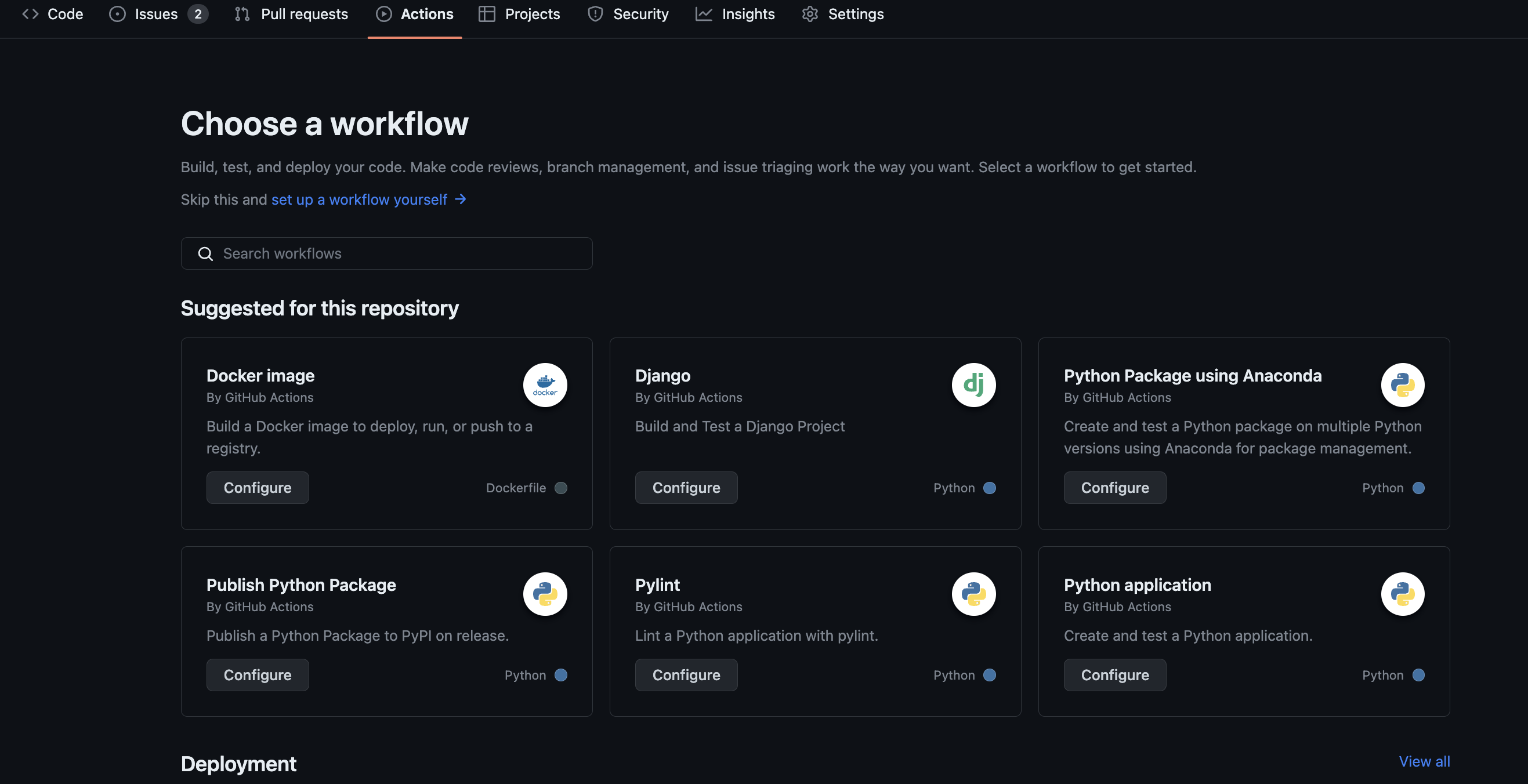 4. github repo로 가서 action 카테고리를 선택한다.