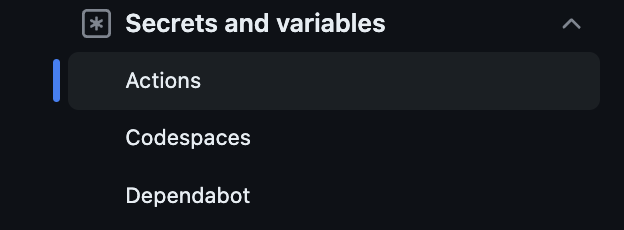 settings 선택 2. Secrets and variables 카테고리에서 Actions 선택