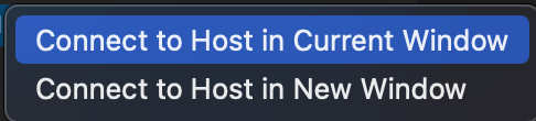 4. 입력을 잘했다면, ip 주소가 추가된 것을 확인할 수 있으면, mac에서는 ctrl을 누른 상태로 클릭을 하거나, 마우스 오른쪽을 클릭하면 2가지 선택할 수 있는 창이 뜬다. 어떤 것을 선택하든 상관은 없다.