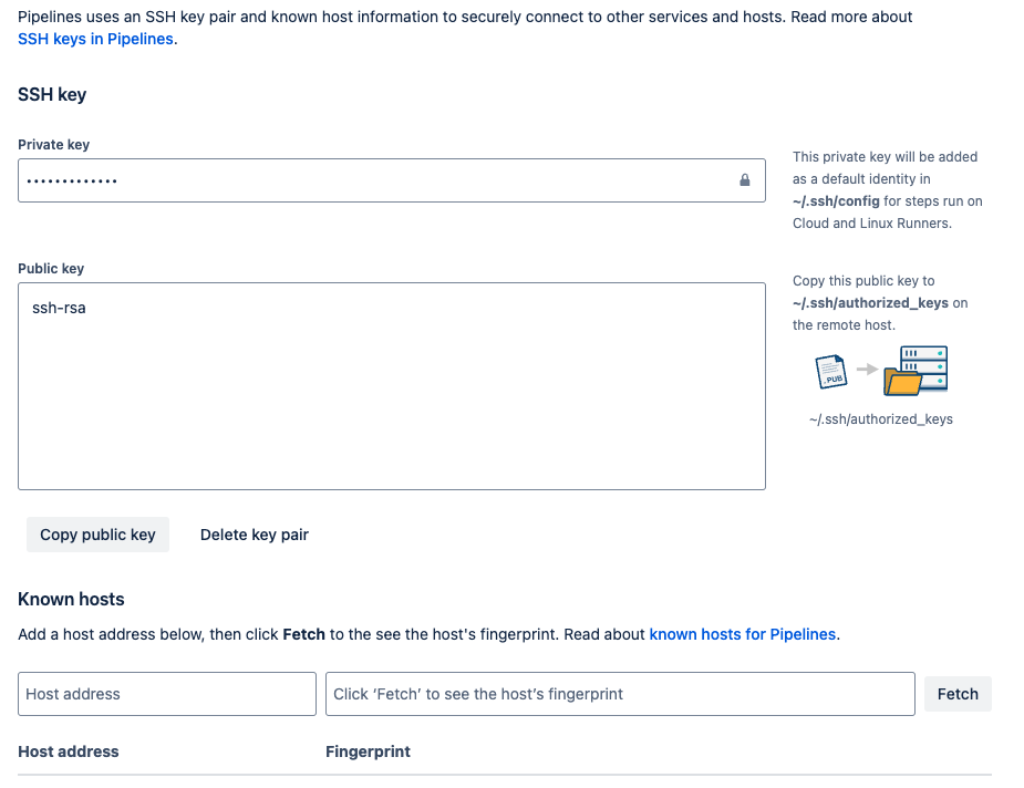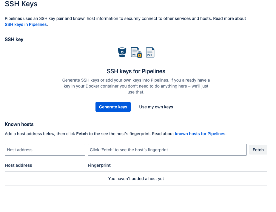 1. Bitbucket에서 내 Repository에 Repository Settings를 선택 후 pipelines 탭에서 SSH Keys 선택