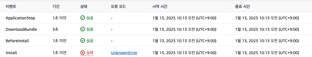 에러마주하기 aws codedeploy를 통해 배포중에 에러가 땋! 원인을 찾아보니 파일 destination에 이미 내가 올리려는 파일과 똑같은 파일이 있다는 의미였다. 구글링을 해보니 appspec.yml 파일에 명령어 한