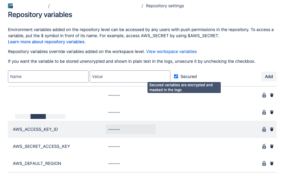 - $로 작성한 부분들은 Repository variables에 작성해주시면 됩니다.