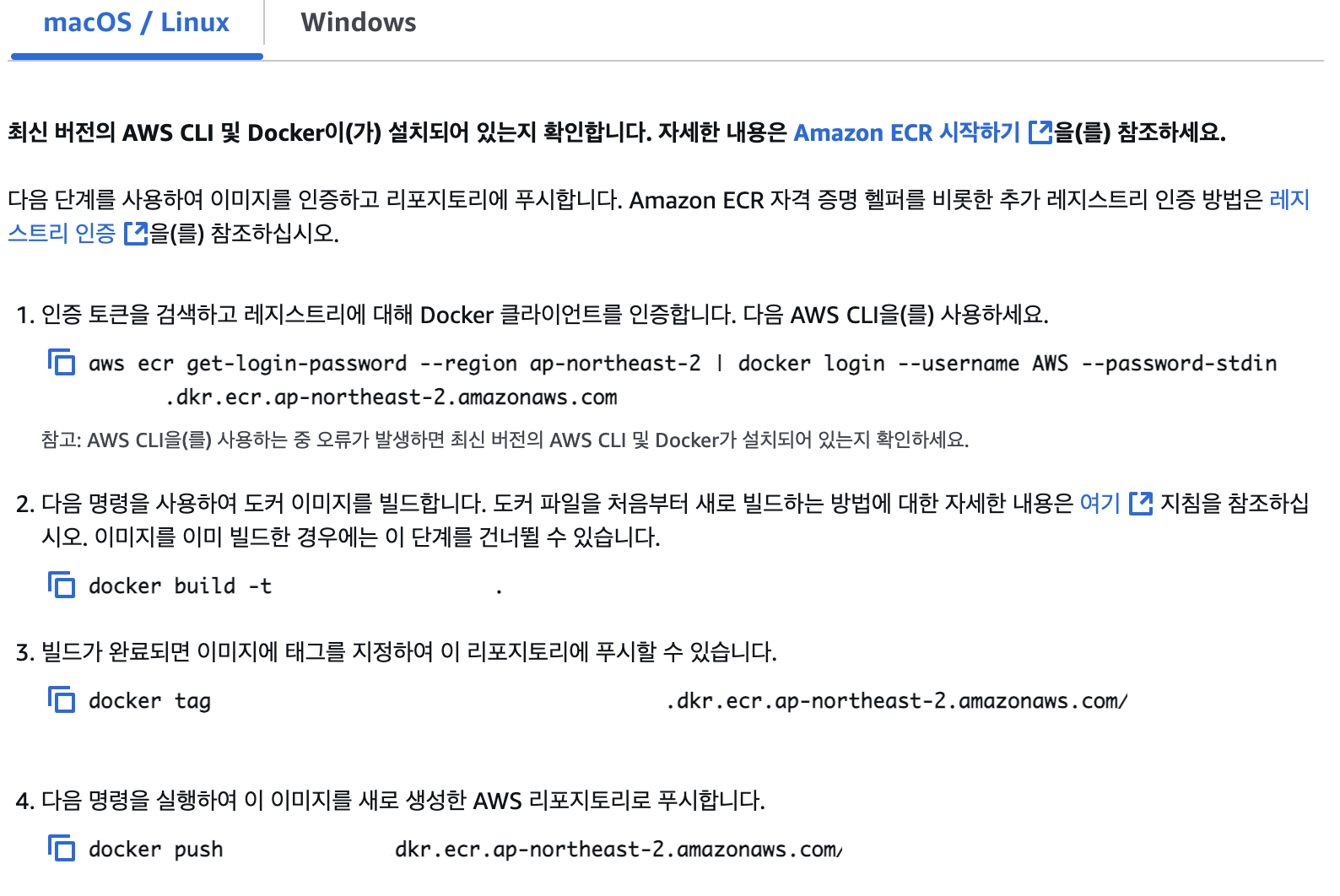 - 1 ~ 4의 과정이 ECR에 이미지를 업로드하는 하나의 과정이라고 생각해 주시면 좋습니다.