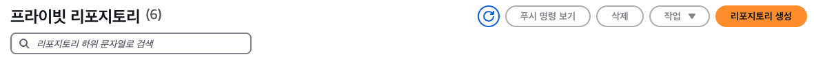 - 프라이빗 리포지토리 탭에서 우측 상단에 리포지토리 생성 클릭