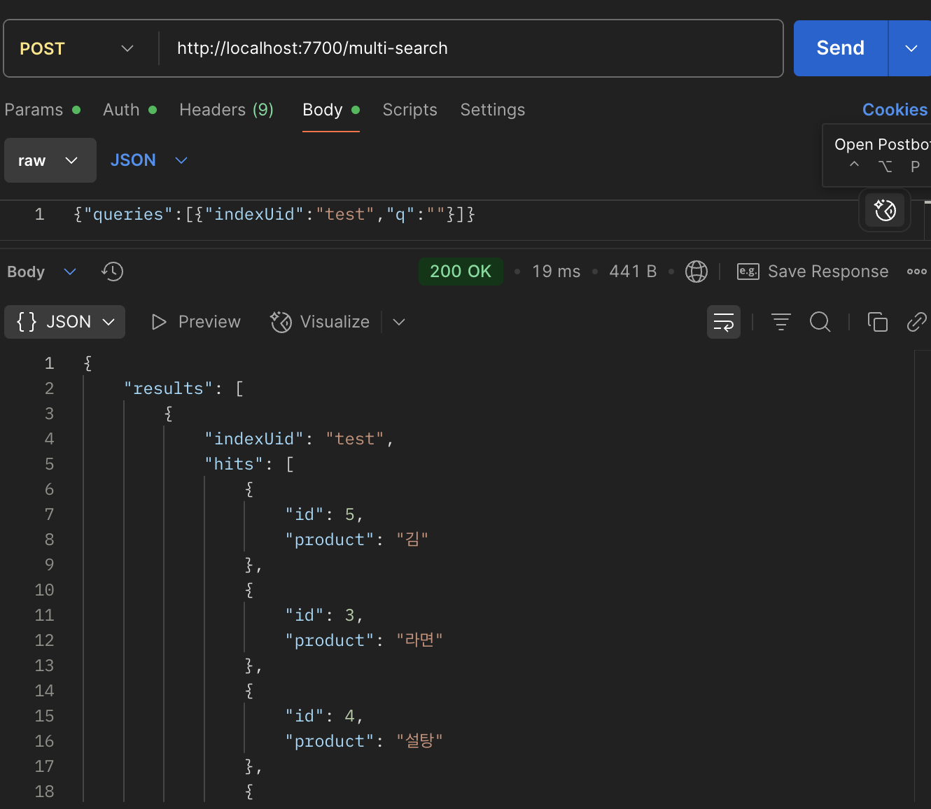 - 실제로 indexes 이후에는 indexUid를 지정하는 것이고, docouments 이후는 pk값을 지정한다고 봐주시면 됩니다.