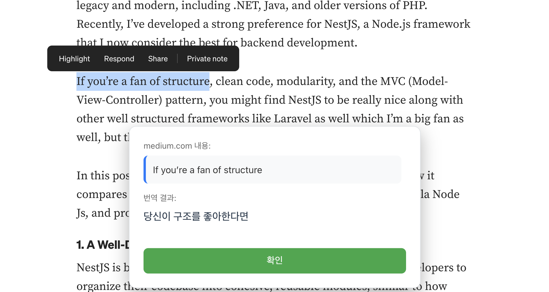 영어를 잘 못하는 사람의 입장에서 미디엄 글을 읽을 때면 크롬의 번역기를 잘 이용하고 있었습니다.