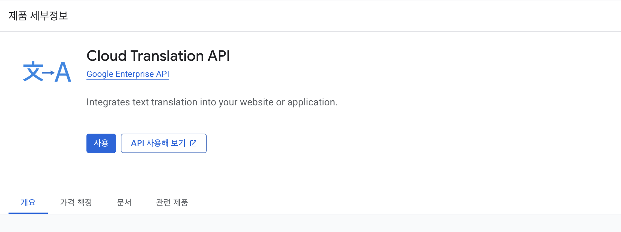 - Translation API 사용해보기 클릭