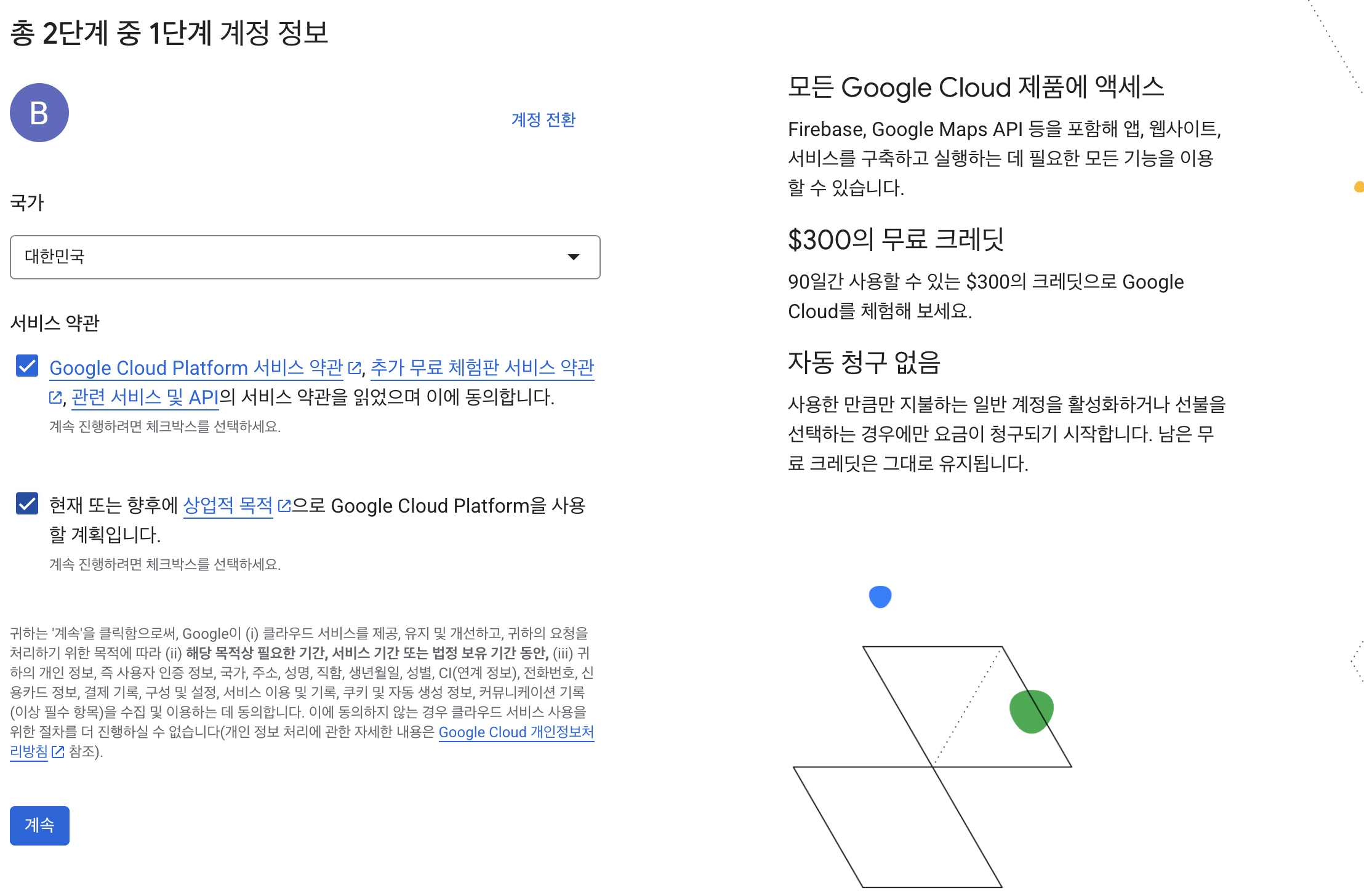 - 처음 Google Cloud를 사용하는 경우 카드 등록부터 생성까지 진행해야 합니다.